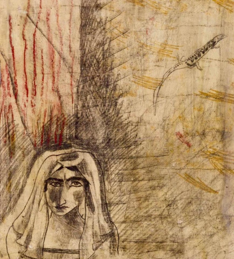 | Giulia e la lucertola Ossido di ferro e cera su carta intelata