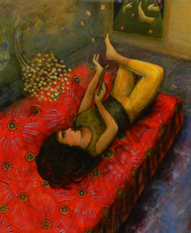 olio, acrilico e carta su tela
