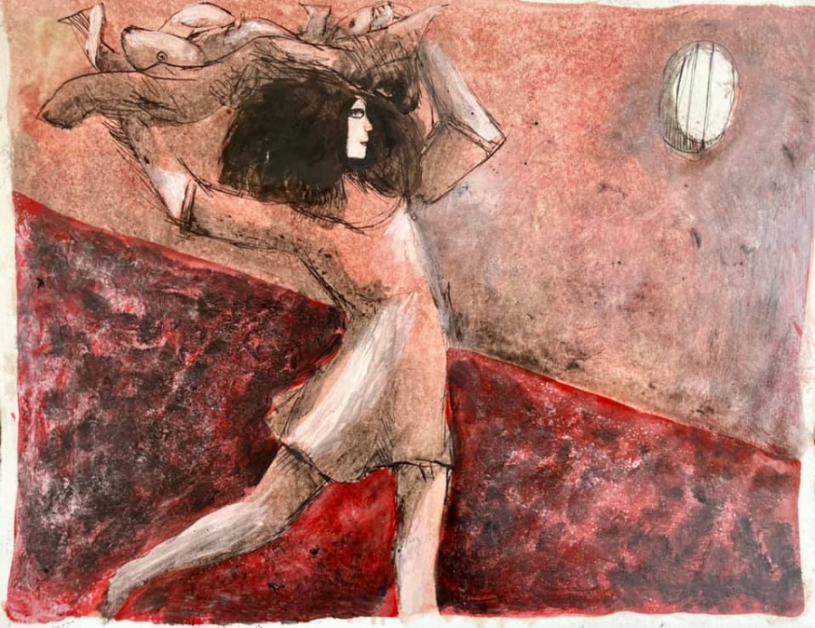 china e acrilico su carta